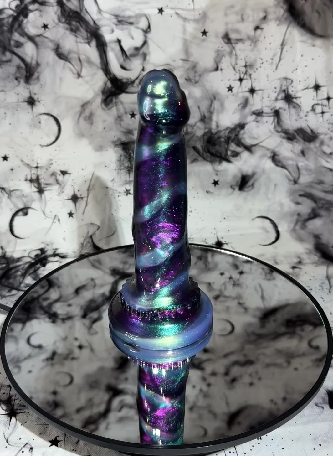 Notes: Ultra high gloss toys may gain a dull finish over time with rubbing. To keep the glossy finish for as long as possible, please use generous amounts of lubricant while using the toy or rubbing the surface. Placing these types of toys on a rough surface for long periods of time may also alter ultra glossy finish. Please be aware that Near Clear toys may have small indentations on the base of the toy. Unfortunately this is a known problem in the indie toy community. If there is a bubble on the surface of toy other than the very base, please let us know!