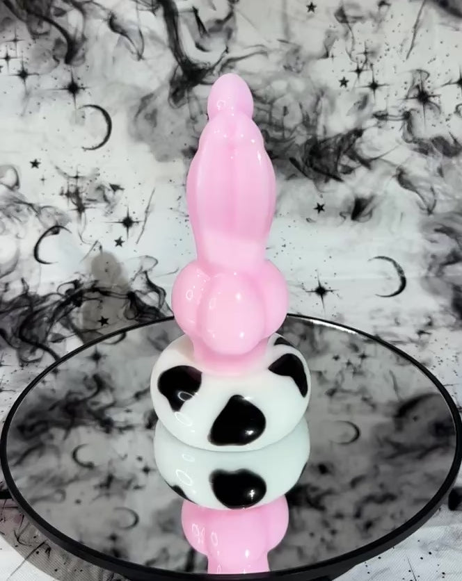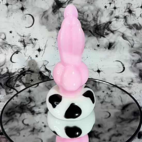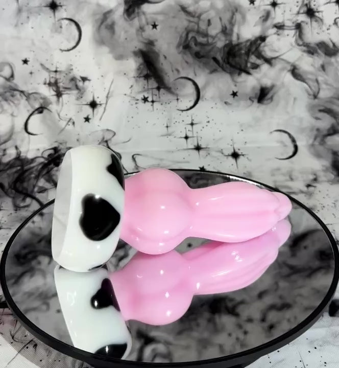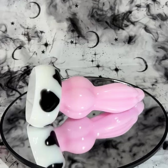 Notes: Ultra high gloss toys may gain a dull finish over time with rubbing. To keep the glossy finish for as long as possible, please use generous amounts of lubricant while using the toy or rubbing the surface. Placing these types of toys on a rough surface for long periods of time may also alter ultra glossy finish. Please be aware that Near Clear toys may have small indentations on the base of the toy. Unfortunately this is a known problem in the indie toy community. If there is a bubble on the surface of toy other than the very base, please let us know!