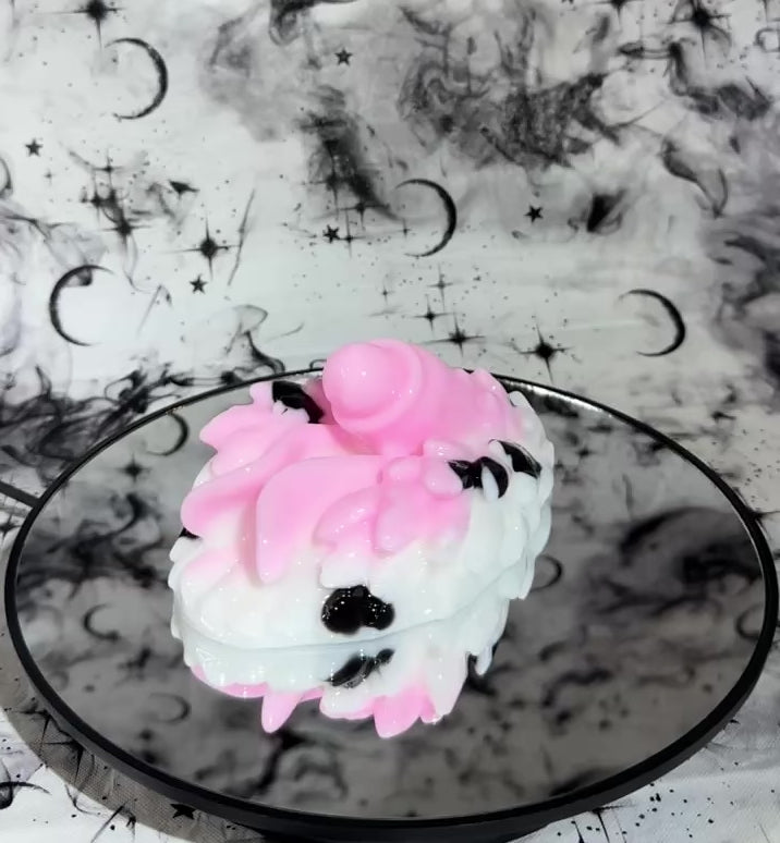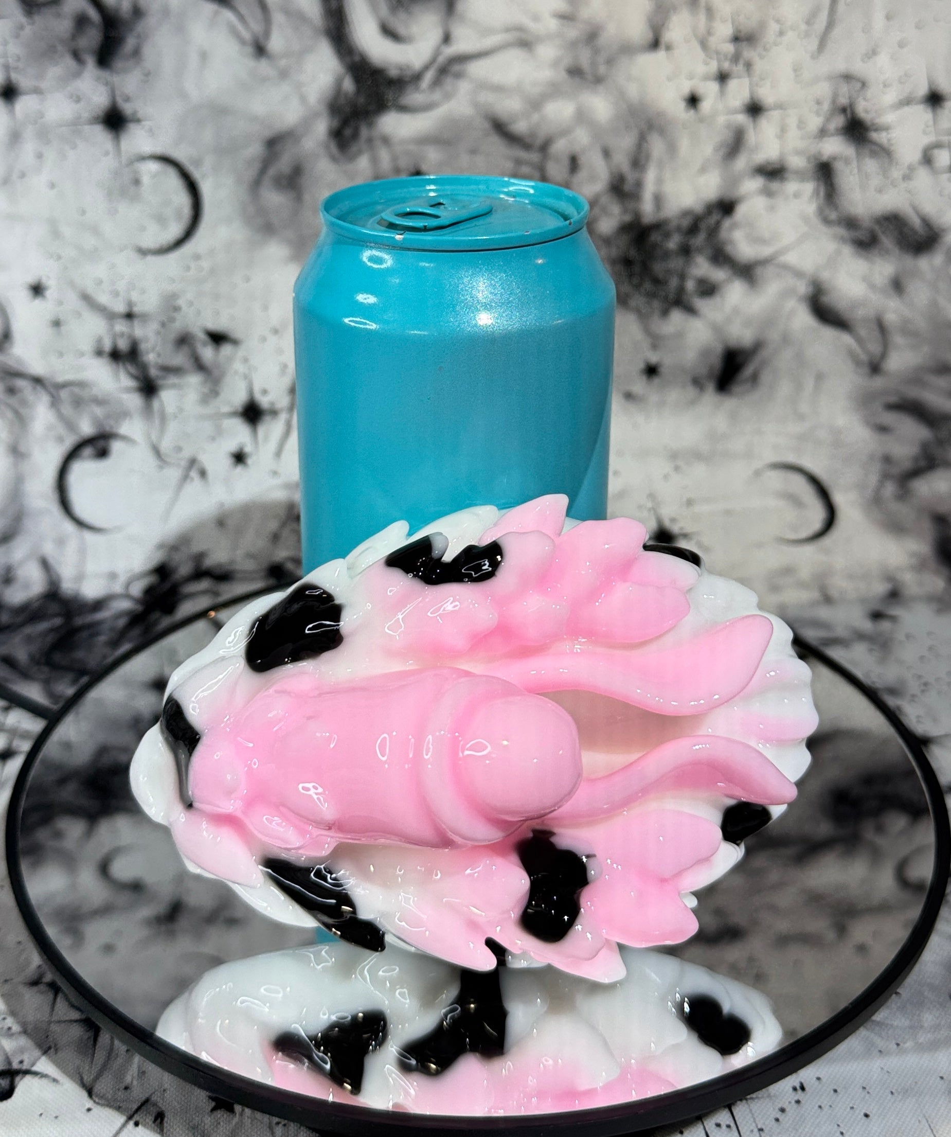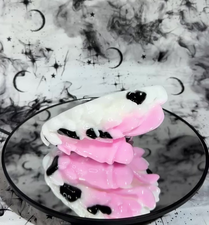 Notes: Ultra high gloss toys may gain a dull finish over time with rubbing. To keep the glossy finish for as long as possible, please use generous amounts of lubricant while using the toy or rubbing the surface. Placing these types of toys on a rough surface for long periods of time may also alter ultra glossy finish. Please be aware that Near Clear toys may have small indentations on the base of the toy. Unfortunately this is a known problem in the indie toy community. If there is a bubble on the surface of toy other than the very base, please let us know!