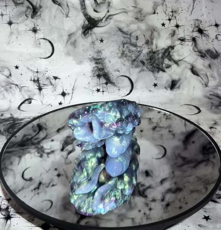 Notes: Ultra high gloss toys may gain a dull finish over time with rubbing. To keep the glossy finish for as long as possible, please use generous amounts of lubricant while using the toy or rubbing the surface. Placing these types of toys on a rough surface for long periods of time may also alter ultra glossy finish. Please be aware that Near Clear toys may have small indentations on the base of the toy. Unfortunately this is a known problem in the indie toy community. If there is a bubble on the surface of toy other than the very base, please let us know!