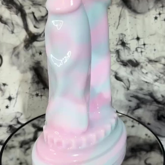 Notes: Ultra high gloss toys may gain a dull finish over time with rubbing. To keep the glossy finish for as long as possible, please use generous amounts of lubricant while using the toy or rubbing the surface. Placing these types of toys on a rough surface for long periods of time may also alter ultra glossy finish. Please be aware that Near Clear toys may have small indentations on the base of the toy. Unfortunately this is a known problem in the indie toy community. If there is a bubble on the surface of toy other than the very base, please let us know!
