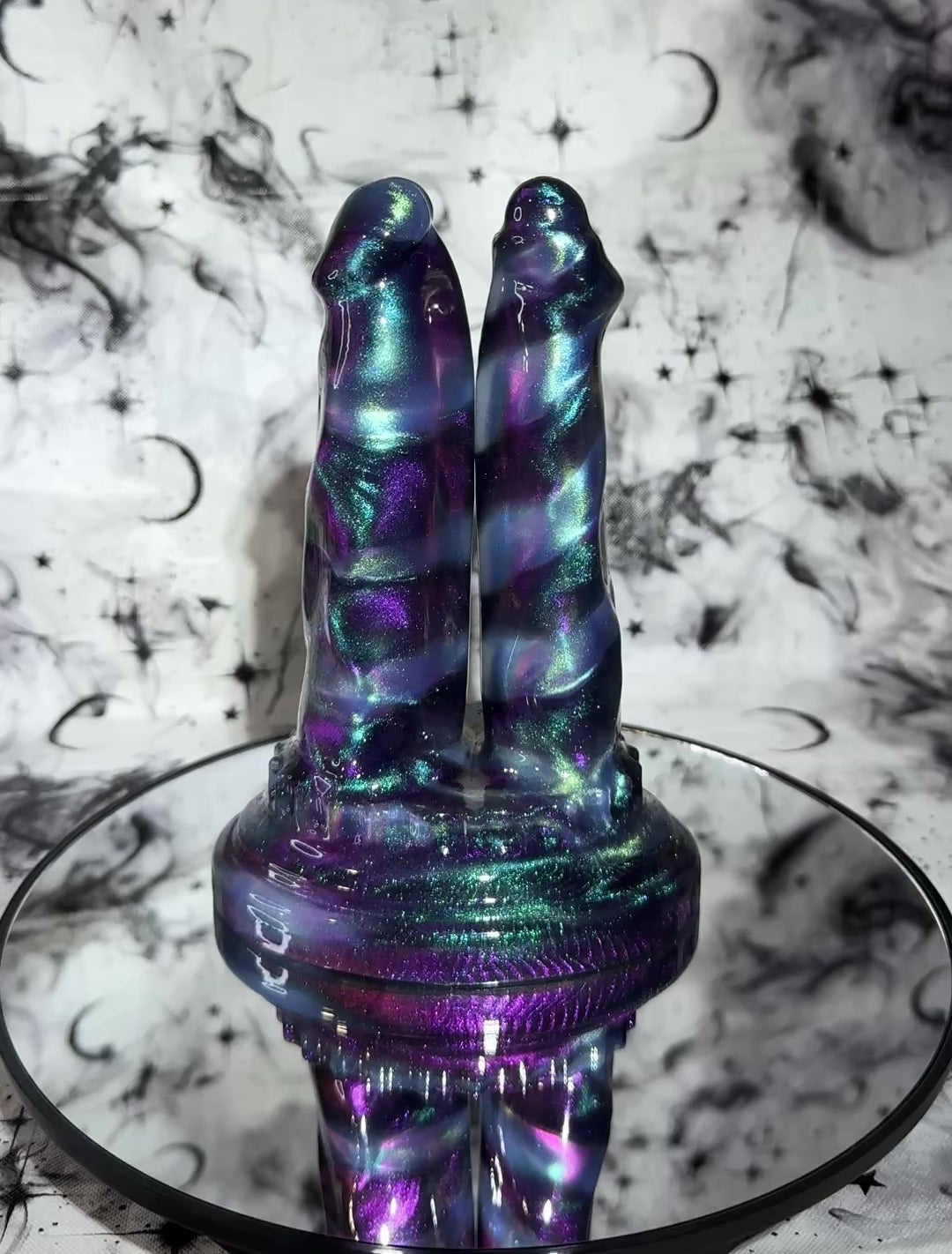 Notes: Ultra high gloss toys may gain a dull finish over time with rubbing. To keep the glossy finish for as long as possible, please use generous amounts of lubricant while using the toy or rubbing the surface. Placing these types of toys on a rough surface for long periods of time may also alter ultra glossy finish. Please be aware that Near Clear toys may have small indentations on the base of the toy. Unfortunately this is a known problem in the indie toy community. If there is a bubble on the surface of toy other than the very base, please let us know!