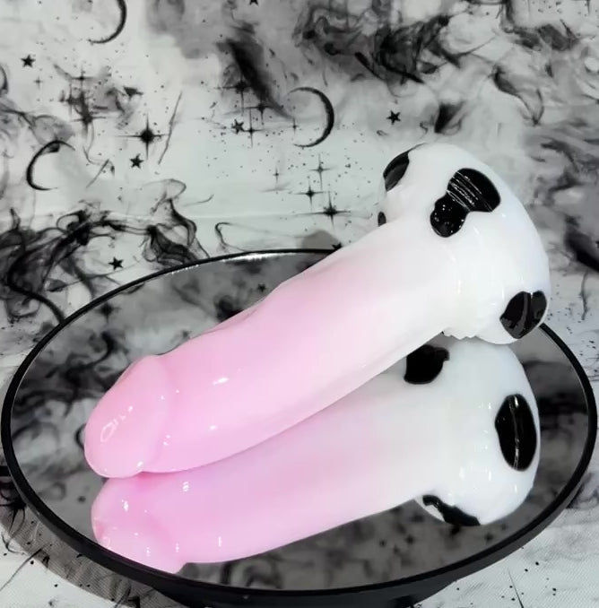 Notes: Ultra high gloss toys may gain a dull finish over time with rubbing. To keep the glossy finish for as long as possible, please use generous amounts of lubricant while using the toy or rubbing the surface. Placing these types of toys on a rough surface for long periods of time may also alter ultra glossy finish. Please be aware that Near Clear toys may have small indentations on the base of the toy. Unfortunately this is a known problem in the indie toy community. If there is a bubble on the surface of toy other than the very base, please let us know!