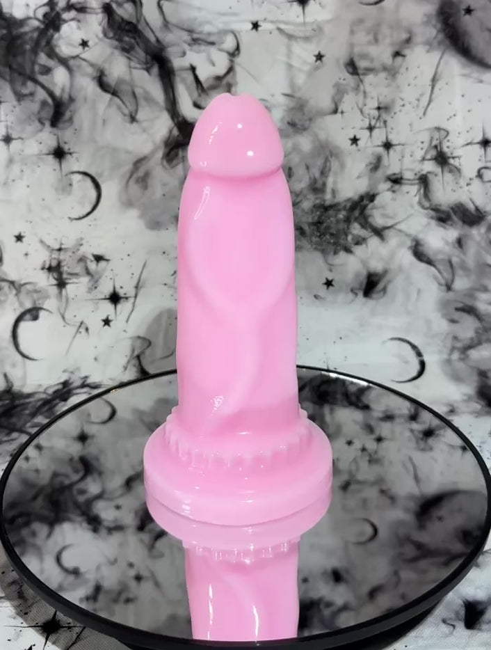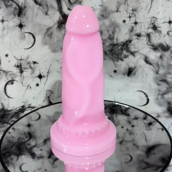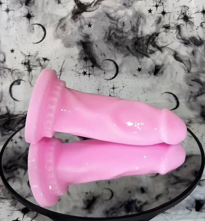 Notes: Ultra high gloss toys may gain a dull finish over time with rubbing. To keep the glossy finish for as long as possible, please use generous amounts of lubricant while using the toy or rubbing the surface. Placing these types of toys on a rough surface for long periods of time may also alter ultra glossy finish. Please be aware that Near Clear toys may have small indentations on the base of the toy. Unfortunately this is a known problem in the indie toy community. If there is a bubble on the surface of toy other than the very base, please let us know!